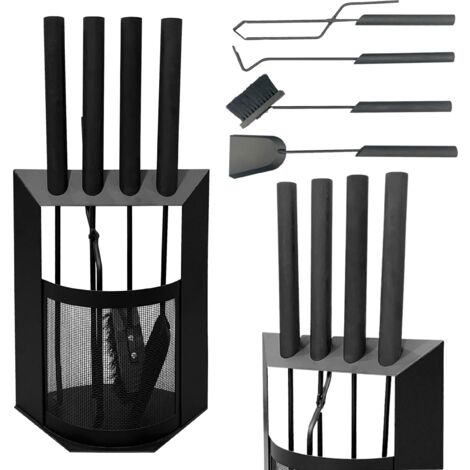 Stylisches Kaminbesteck das was hermacht! Dieses 4-teilige Set in Schwarz enthält Besen, Schaufel, Haken und Ständer - alles aus hochwertigem Edelstahl und Eisen. Mit pulverbeschichteter Oberfläche, hitzebeständig und langlebig. Die Griffe aus Edelstahl liegen gut in der Hand und schützen vor Hitze. Gesamtmaße 22x56cm - kompakt und platzsparend. Sieht nicht nur gut aus, sondern macht auch die Kaminarbeit viel einfacher. Perfekt für Kamin, Ofen oder Grill!