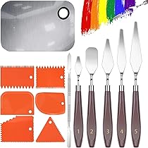 Mit diesem 8-teiligen Malmesser-Set kommst du deinen Kunstprojekten richtig nah! Die verschiedenen Spachtel-Formen geben dir totale Kontrolle über Farbe und Textur - ob du nun Ölfarbe, Acryl oder andere Materialien verwendest. Die Klingen aus Edelstahl sind dünn aber stabil, mit super Elastizität für präzises Arbeiten. Die Holzgriffe liegen gut in der Hand und ermüden auch bei langen Mal-Sessions nicht. Perfekt für große Leinwände, Wandbilder oder auch für Theater-Kulissen. Das Set ist ideal für Profis, Hobby-Künstler oder Kunststudenten - eigentlich für jeden, der gerne kreativ ist! Die doppelte Nietung sorgt dafür, dass nichts wackelt. Du kannst damit Farben mischen, verteilen, kratzen oder spezielle Effekte erzeugen. Einfach mal ausprobieren und sehen, welche coolen Techniken du damit entwickelst! Die Aufbewahrung ist kein Problem - die Messer kannst du einfach aufhängen oder in einer Schublade verstauen. Mach deine Kunst noch ausdrucksstärker mit diesen vielseitigen Werkzeugen!