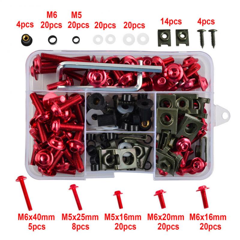 Komplett-Set für dein Motorrad! 177 Teile in goldfarbenem Aluminium - korrosionsbeständig und stark. Enthalten: M5/M6 Schrauben, Speed-Clips, Unterlegscheiben, Muttern und Werkzeug. Perfekt für Verkleidungen, Karosserie und Stoßstangen. Einfach zu montieren - dein Bike sieht aus wie neu! In praktischer Kunststoff-Box organisiert. Ob Reparatur oder Tuning - mit diesem Set hast du alle Befestigungen, die du brauchst. Profi-Qualität für langanhaltenden Glanz!