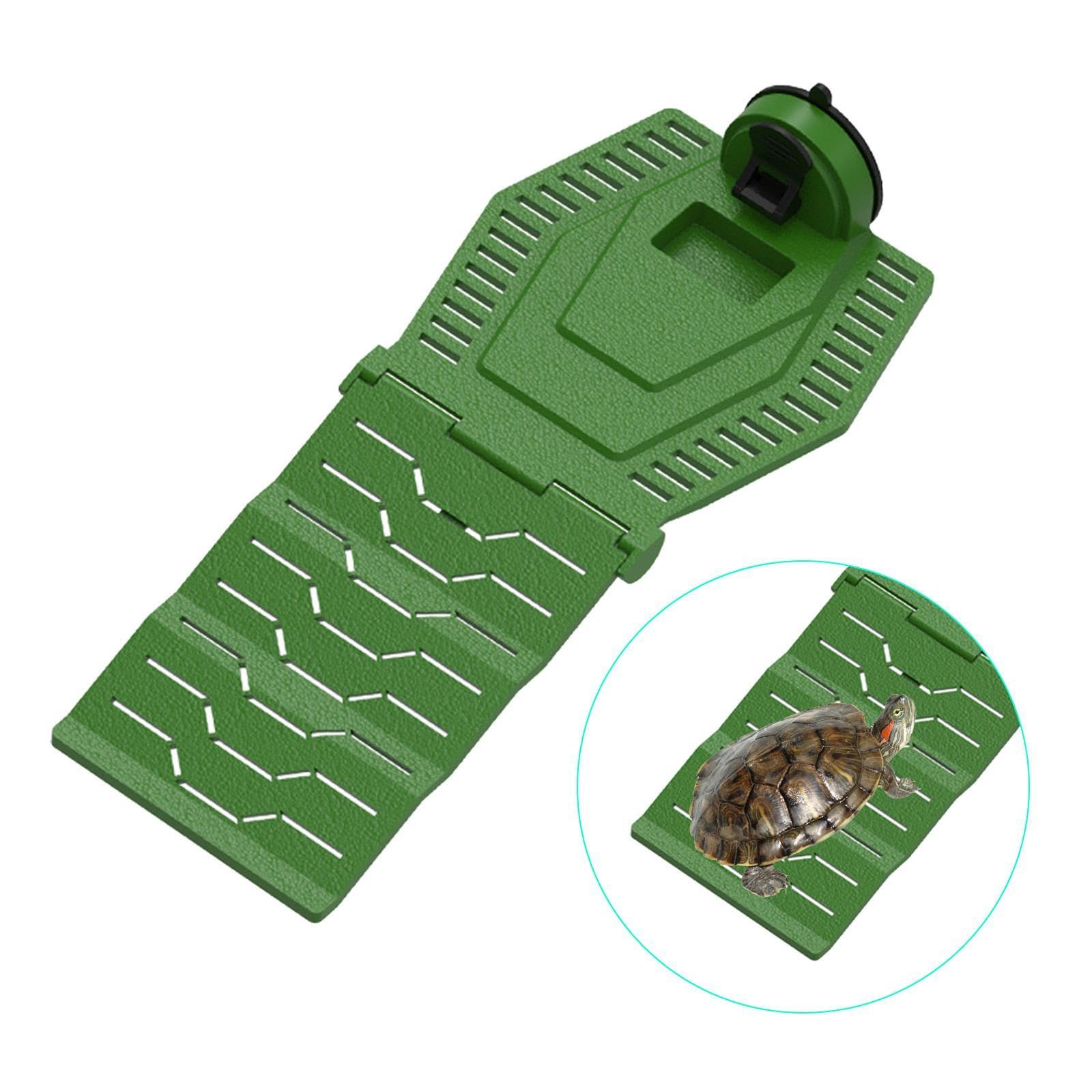 Wow, deine Schildkröte wird diese Plattform lieben! Endlich ein eigener Landbereich zum Sonnenbaden, Fressen und Ausruhen. Das PP-Material ist extra verstärkt, damit auch größere Schildkröten sicher drauf liegen können.\\n\\nDie doppelten Saugnäpfe halten bombenfest - keine Sorge, dass die Plattform abtreibt oder umkippt. Und die sanfte Rampe ist perfekt für Schildkröten zum Hochklettern, trainiert ihre Muskeln und hält sie fit.\\n\\nBesonders praktisch: Integrierter Futtertrog und Pflanzenbereich. So kannst du deine Schildkröte bequem füttern und die Plattform mit echten oder künstlichen Pflanzen verschönern.\\n\\nDie schwarze Farbe sieht edel aus und passt zu jeder Einrichtung. Und das Beste: Sie ist sowohl für Wasser- als auch Landschildkröten geeignet. Einfach im Aquarium oder Terrarium befestigen und dein Tier freut sich!\\n\\nEinfache Reinigung, langlebiges Material und ein Design, das wirklich an die Bedürfnisse von Reptilien angepasst ist. Deine Schildkröte wird es dir danken!