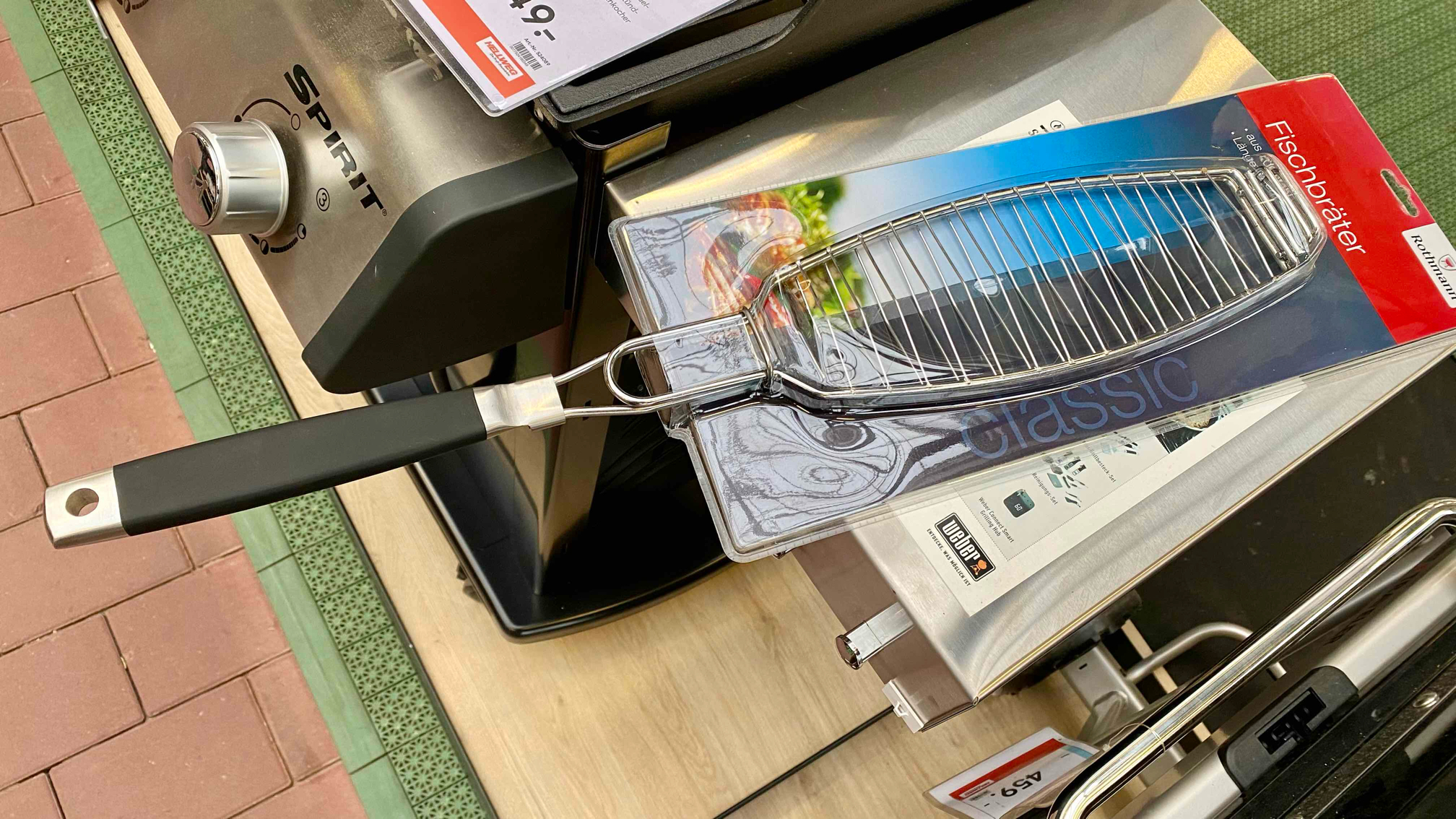 Grillmeister aufgepasst! Mit diesem cleveren 3-fach Fischbräter von MUSTANG gelingt dir jeder Fisch perfekt. Egal ob Lachs, Forelle oder Dorade - in den drei separaten Grillfeldern bleibt alles an Ort und Stelle. Die Antihaftbeschichtung ist der absolute Game-Changer: Dein Fisch fällt nicht auseinander und lässt sich super einfach wenden. Der abnehmbare Holzgriff schützt deine Hände vor der Hitze - aber nimm trotzdem lieber Grillhandschuhe zur Sicherheit! Mit 34x22cm Größe passt eine ordentliche Portion rein, und die praktische Verriegelung sorgt dafür, dass nichts ungewollt aufgeht. Aus Finnland, wo sie wissen, wie man guten Fisch zubereitet. Perfekt für den nächsten Grillabend - deine Gäste werden begeistert sein! Einfach den Fisch rein, auf den Grill und in wenigen Minuten hast du ein kulinarisches Highlight auf dem Teller.