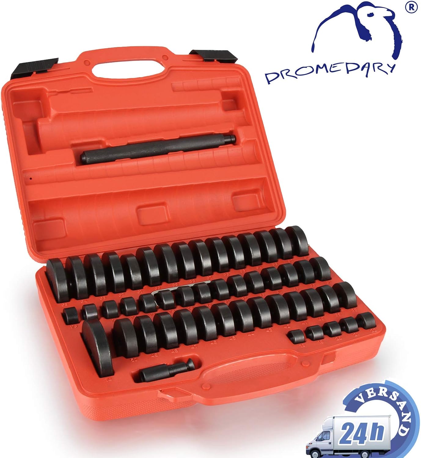 Für alle Schrauber und Werkstatt-Profis: Dieses 52-teilige Montagescheiben-Set ist ein echter Alleskönner! Enthalten sind 49 Druckscheiben mit Durchmessern von 18-65mm (in 1mm Schritten) plus einer 74mm Scheibe. Dazu ein 180mm langes Metall-Griffstück für die Hammer-Montage. Perfekt für die Installation von Lagerschalen, Buchsen, Dichtringen und Gummidichtungen. Besonders praktisch bei der Verwendung mit Hydraulikpressen - so geht nichts schief! Die verschiedenen Größen garantieren, dass du für jede Aufgabe die passende Scheibe parat hast. Robust verarbeitet und lange haltbar. Ein Muss für jede gut sortierte Werkstatt und alle, die gerne selbst an ihren Fahrzeugen schrauben!