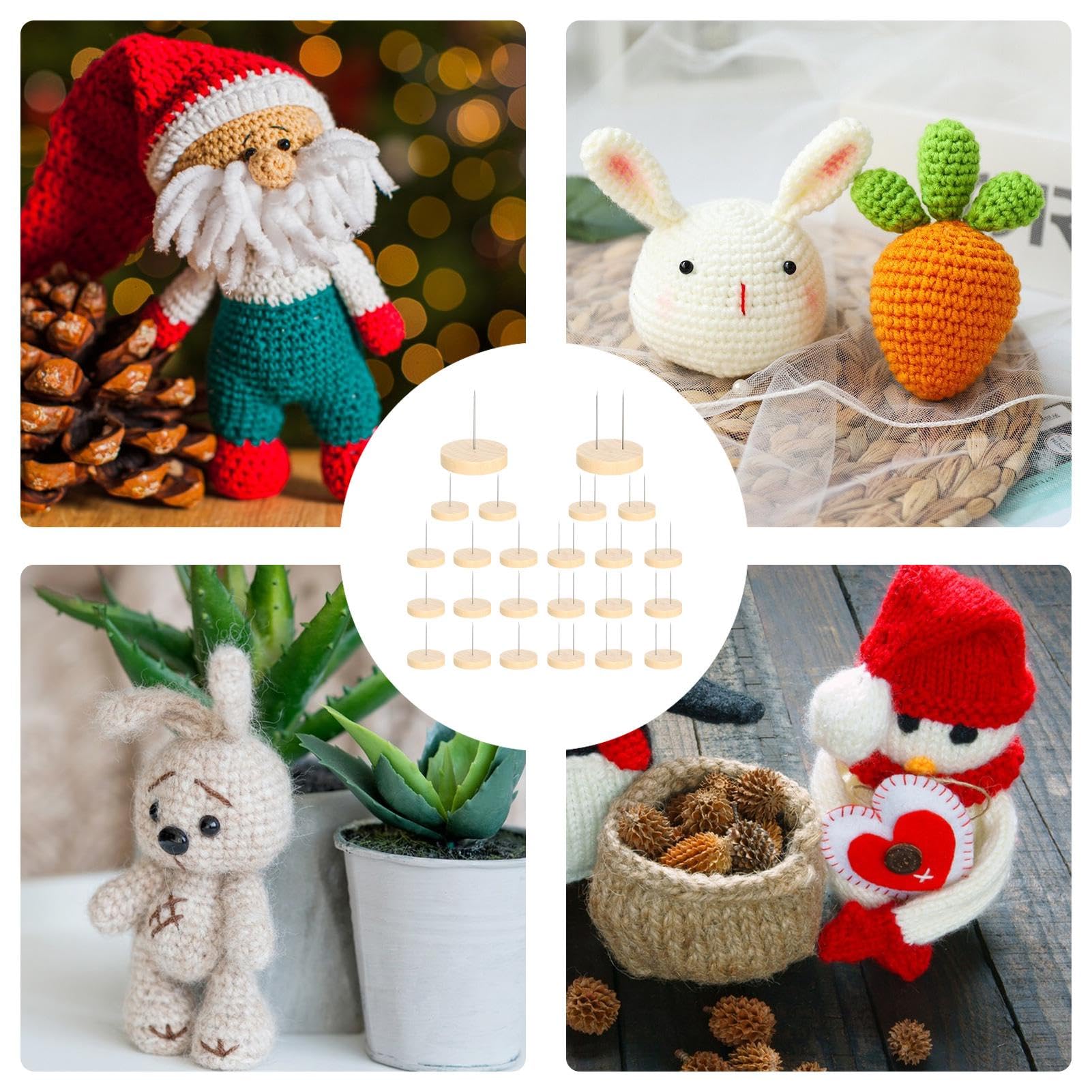 Puppen-Liebhaber und Sammler, dies ist eure Lösung für ordentliche Präsentation! 48 Stück Puppenständer im Set - 24 mit Doppelnadel, 24 mit Einzelnadel. Jeder Holzsockel ist ca. 3,9 cm groß - perfekt für gehäkelte Minipuppen, Plüschtiere oder Actionfiguren. Die Nadeln stützen eure Puppen sanft, ohne sie zu beschädigen. Super für empfindliche Sammlerstücke! Ob ihr sie auf dem Schreibtisch, im Regal oder in der Vitrine ausstellen wollt - die Puppen stehen sicher und sehen toll aus. Das Set deckt den täglichen Bedarf ab und ihr müsst nicht ständig nachkaufen. Perfekt für Häkel-Begeisterte, die ihre Kunstwerke präsentieren wollen. Aber auch für Spielzeug-Sammler ideal. Die Ständer nehmen kaum Platz weg, aber machen so viel her! Einfach die Puppe aufstecken und sie steht wie eine Eins. Auch super als Geschenk für kreative Menschen. Macht aus Chaos eine schöne Ausstellung! Eure Puppen verdienen diesen royalen Behandlung. Einfach bestellen und sich über ordentliche Verhältnisse freuen!