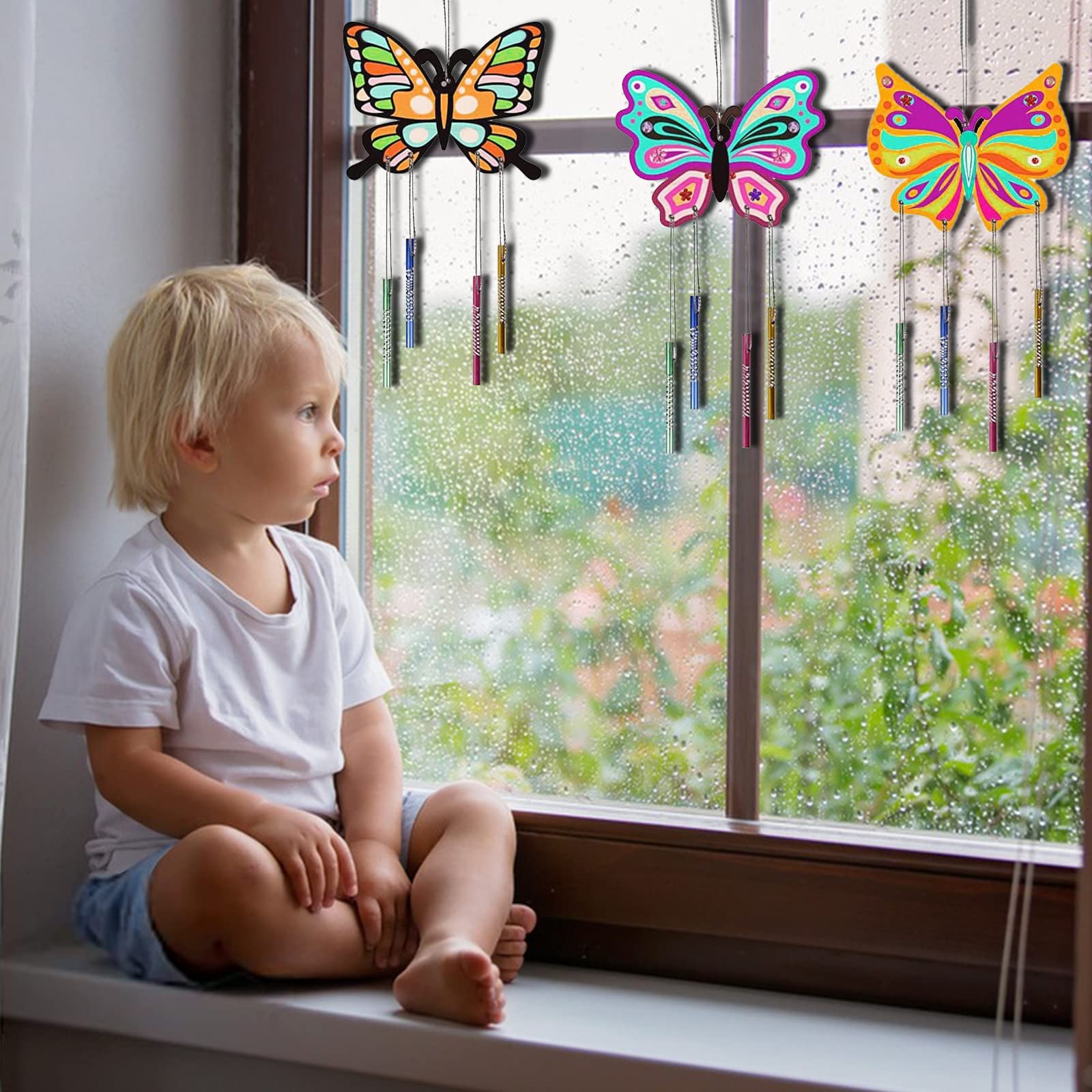 Kreativer Bastelspaß für kleine Künstler! Dieses zauberhafte Schmetterling-Bastelset enthält 8 verschiedene Holz-Schmetterlinge, 32 Windspielröhren, 2 Malpinsel und 8 Meter Schnur. Alles aus natürlichem Holz mit glatten, gratfreien Oberflächen - absolut sicher für Kinder. Jeder Schmetterling hat vorgebohrte Löcher, sodass sie sich einfach zu einem bunten Windspiel zusammenbauen lassen. Die Kinder können die Schmetterlinge nach Herzenslust bemalen und gestalten - der Kreativität sind keine Grenzen gesetzt! Wenn der Wind durch die Röhren weht, entsteht ein sanftes, beruhigendes Geräusch. Perfekt fürs Kinderzimmer, den Garten oder die Fensterbank. Ein tolles Geschenk für Geburtstage, Ostern, Weihnachten oder einfach so. Fördert die Feinmotorik und Kreativität der Kleinen. Einfach auspacken, losbasteln und sich an den bunten Ergebnissen erfreuen! Für Kinder ab 3 Jahren - am besten unter Aufsicht von Erwachsenen. Stundenlanger Bastelspaß garantiert!