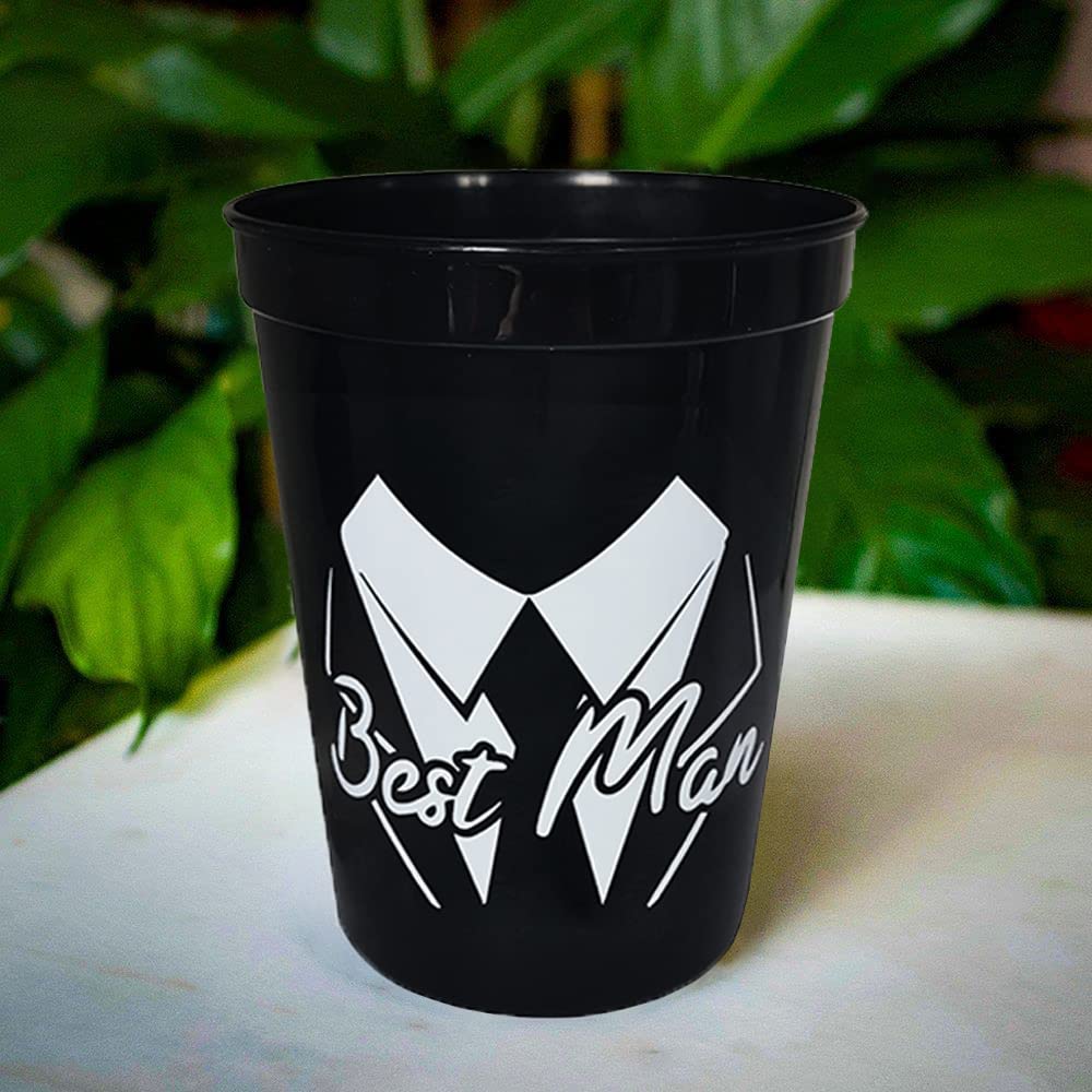 Die schwarz-weißen Becher mit Anzug-Design sehen super stylisch aus. 'Groom' für den Bräutigam und 'Groom's Crew' für seine Jungs - so weiß jeder, wer zur Truppe gehört!