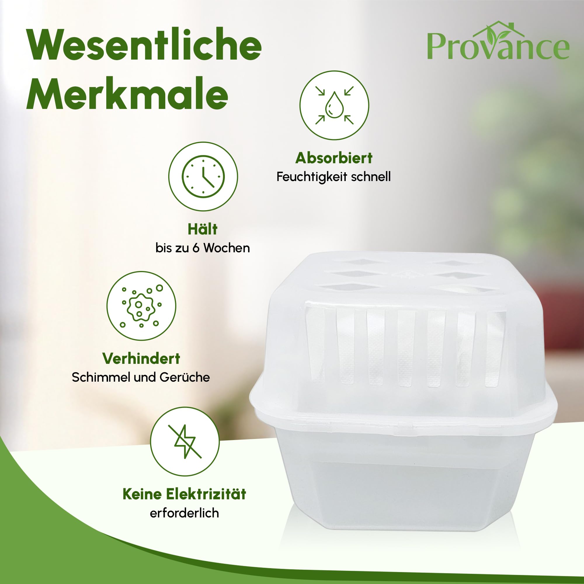 Ideal für Räume bis 50m². Perfekt für Keller, Bad, Küche, Schrank oder Auto. Die integrierte Sammelbox verhindert Überlaufen - sicher und wartungsfrei. Bis zu 70 Tage Wirkdauer pro Box, je nach Luftfeuchtigkeit.
