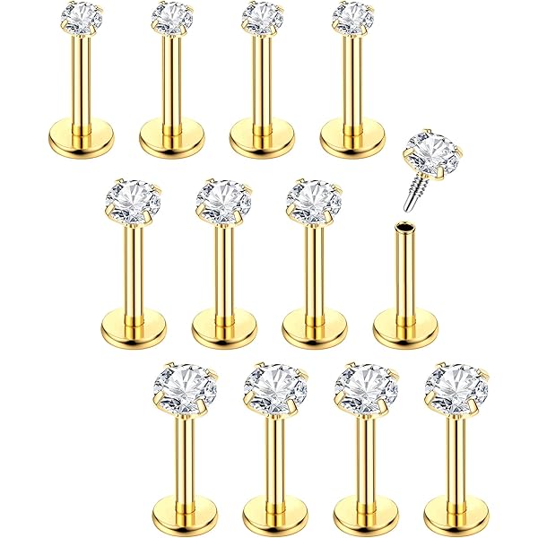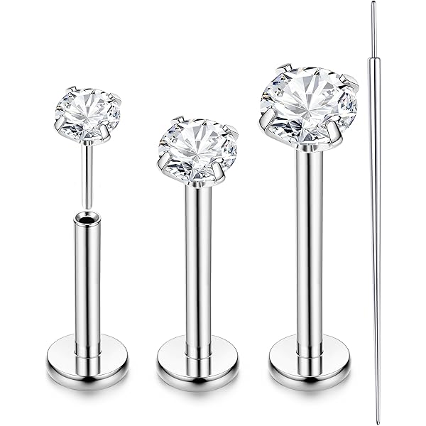 • Lusofie 6-tlg. Push In Piercing Set - Gewindelose Stecker Für Nase, Lippe & Ohr 20g