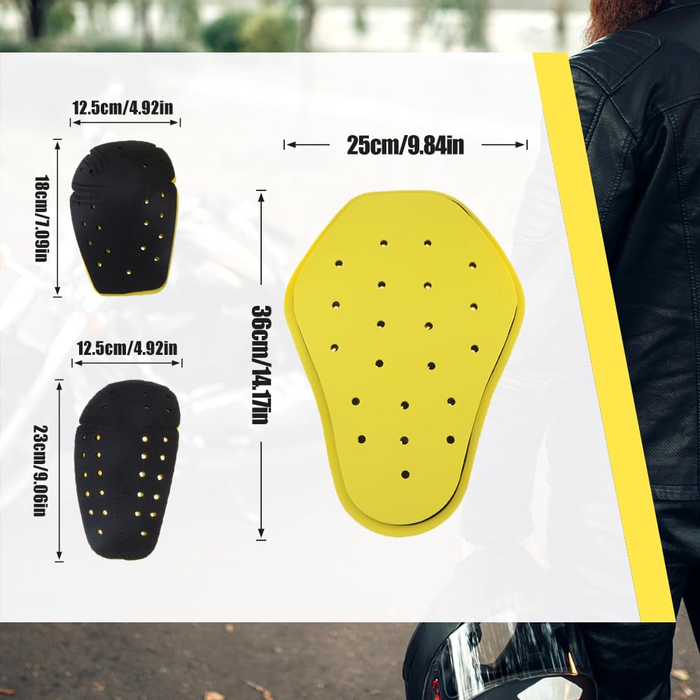 Safety first! Dieses 5-teilige Motorrad-Schutzset gibt dir die extra Portion Sicherheit auf der Straße. Mit Schulter-, Ellbogen- und Rückenprotektoren aus hochdichtem EVA-Schaum. Die schwarz-gelbe Außenschicht dämpft Stöße super ab, während das perforierte Design für beste Belüftung sorgt. Das universelle Befestigungssystem passt in fast jede Motorradjacke - einfach rein und raus. Super leicht aber trotzdem stabil, für Männer und Frauen gleichermaßen geeignet. Nicht nur für Motorradfahrer, sondern auch für Ski, Snowboard oder andere Actionsportarten. Macht deine Jacke zur Schutzjacke ohne Komfort zu verlieren. Doppelt verdickt an den wichtigen Stellen - da fühlst du dich gleich viel sicherer bei deinen Abenteuern!