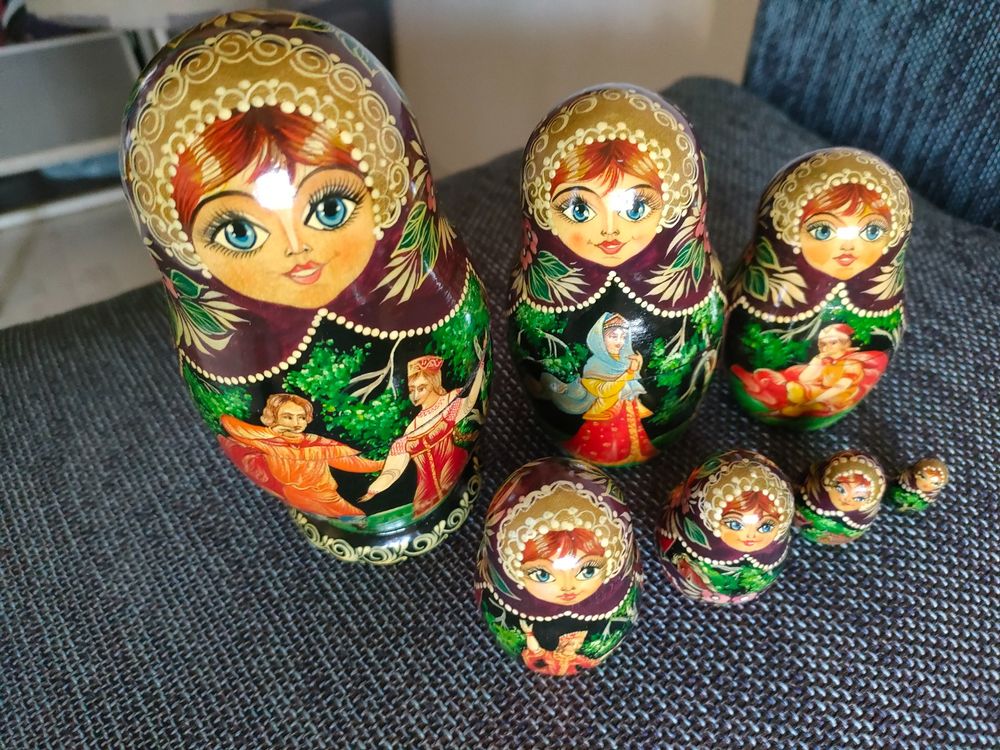 Entdecke die magische Welt der Matroschkas! Dieses wunderschöne 7-teilige Steckpuppen-Set begeistert Kinder und Sammler gleichermaßen. Die größte Puppe misst ca. 16-17 cm und verbirgt in sich sechs weitere, immer kleinere Puppen - ein echter Überraschungseffekt! Liebevoll handbemalt mit traditionellen russischen Motiven, wobei jede Puppe ihr eigenes, einzigartiges Design hat. Perfekt für Kinder ab 3 Jahren zum Spielen und Entdecken. Fördert die Feinmotorik und das Verständnis für Größenverhältnisse. Auch als dekoratives Element im Regal oder als besonderes Geschenk ideal. Die Farben können durch die Handbemalung leicht variieren - das macht jede Matroschka zu einem Unikat! Tauche ein in die russische Volkskunst und erlebe stundenlangen Spielspaß mit diesem zeitlosen Klassiker.