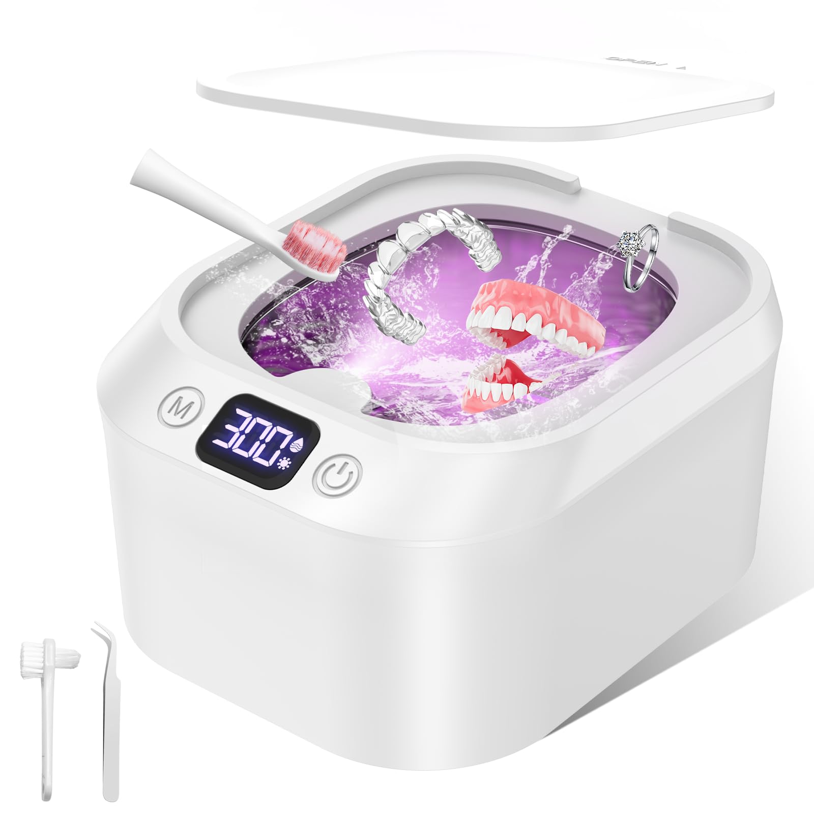 Dieser Ultraschallreiniger ist ein absolutes Multitalent für dein Zuhause! Mit 49.000 Hz Schallfrequenz und 4 LED-Lichten entfernt er selbst hartnäckigsten Schmutz von Schmuck, Brillen, Zahnspangen, Retainern und Prothesen. Der 700ml Edelstahltank (SUS304) ist riesig - da passt alles gleichzeitig rein! Mit IP54 Spritzwasserschutz geht nichts daneben. Fünf Timer-Einstellungen von 90 bis 480 Sekunden - je nach Verschmutzungsgrad. Einfach Knopf drücken und das Gerät macht den Rest! Das coole Feature: Integrierte UVA/UVB Lampen für wasserlose Tiefenreinigung - perfekt für Make-up-Pinsel oder kleine Instrumente. Der durchsichtige Deckel lässt dich zuschauen, wie der Schmutz verschwindet. Sieht super modern aus und ist ein tolles Geschenk! Aber Achtung: Nicht geeignet für Perlen, Opale, Türkis, Korallen oder Brillen mit UV-Beschichtung. Ansonsten - einfach alles reinwerfen, was sauber werden soll! Von dreckigen Ohrringen bis zur verschmierten Brille - danach glänzt alles wie neu. Ein Must-Have für alle, die Wert auf Hygiene und Sauberkeit legen!