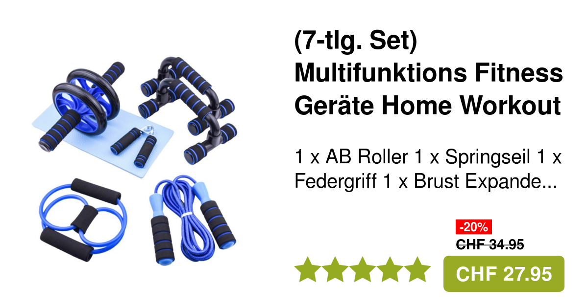 Dein komplettes Home-Gym in einem Set! Enthält alles für effektives Training daheim: Liegestützgriffe für tiefere Push-Ups ohne Handgelenksschmerzen, Bauchtrainer-Rad mit Knieschutz für starke Core-Muskeln, Handtrainer für kräftige Unterarme und ein verstellbares Speed-Rope Springseil mit Anti-Rutsch-Griffen. Alles durchdacht: gepolsterte Griffe, rutschfeste Oberflächen, verstellbare Längen. In 4 Farben erhältlich - such dir deine Lieblingsfarbe aus. Ob Einsteiger oder Fortgeschrittener - hier findest du die Basics für deine Fitness-Routine. Platzsparend verstorbar, immer griffbereit!