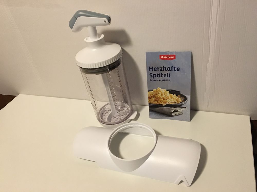 Hey Kochbegeisterte! Mit diesem Betty Bossi Spätzle Knöpfler Set wird die Zubereitung von frischen Gnocchi und Spätzle zum absoluten Kinderspiel. Das Set enthält alles, was du brauchst: Zwei Siebe mit unterschiedlichen Lochgrößen für perfekte Teigportionen und einen praktischen Teigschaber. Die große Fläche der Kochform sorgt dafür, dass kein Teig mehr kleben bleibt - dank der Antihaft-Beschichtung geht alles super einfach. Und das Beste: Die rutschfeste Unterseite aus Kunststoff gibt dir einen sicheren Halt auf jedem Topf oder jeder Pfanne. Nach dem Kochen kannst du alle Teile einfach in die Spülmaschine stecken - praktischer geht's nicht! Egal ob du ein erfahrener Hobbykoch bist oder gerade erst anfängst, mit diesem Set gelingen dir perfekte Hausgemachte Gnocchi und Spätzle jedes Mal. Perfekt für Familienessen, Dinnerpartys oder einfach wenn du mal was Besonderes kochen willst. Die Qualität von Betty Bossi kennt man ja - da kannst du dich drauf verlassen! Also, worauf wartest du noch? Hol dir das Set und verwöhne dich und deine Liebsten mit selbstgemachten Köstlichkeiten, die wirklich jeder hinbekommt.