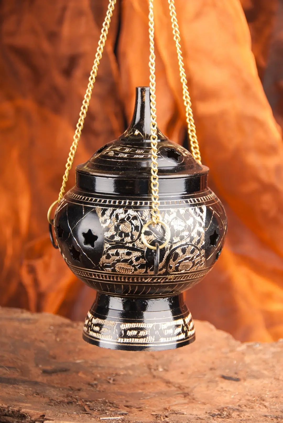 Willst du entspannen und deine Räume mit schönen Düften füllen? Dieses Räucherstövchen in edlem Schwarz/Gold-Design ist perfekt dafür! Die verstellbare Siebschale aus Messing ermöglicht dir, die Höhe individuell anzupassen - so verbrennst du deine Harze und Kräuter nicht. Einfach ein Teelicht unten platzieren, die Räuchermischung oben drauf - und schon verbreiten sich sanfte Düfte im Raum. Mit den Maßen 15 x 9,5 cm ist es kompakt genug für jeden Tisch, aber groß genug für langanhaltendes Räuchern. Der Holzgriff bleibt immer kühl, sodass du die Höhe auch während des Betriebs anpassen kannst. Perfekt für Meditation, Yoga oder einfach zum Entspannen am Abend. Hochwertig verarbeitet aus Metall - da hast du lange Freude dran!