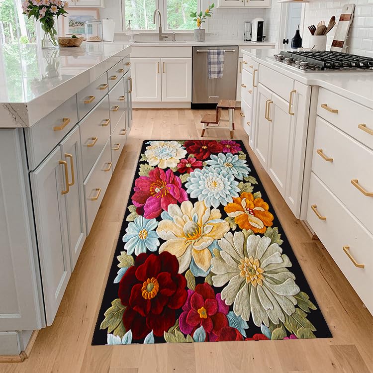 Dppyuxa Teppich Läufer 80x200cm - Geblümter Küchenteppich Waschbar & Rutschfest