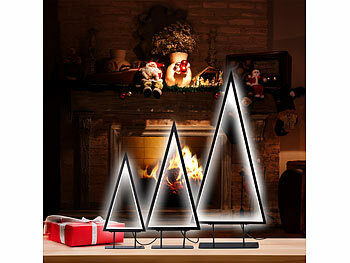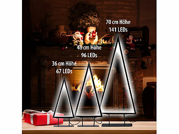 Modernes Weihnachtsdeko das richtig was hermacht! Dieses 3er-Set mit 36cm, 46cm und 70cm hohen Metall-Weihnachtsbäumen sieht einfach edel aus. Mit warmweißen LEDs die gemütliches Licht verbreiten - perfekt für die Vorweihnachtszeit! Einfach per USB anschließen (Netzteil nicht dabei) und schon leuchten sie. Super für Fensterbank, Sideboard oder als Tischdeko. Kein lästiges Schmücken - einfach aufstellen und einschalten! Die schlanke Form passt auch in kleine Ecken. Macht sofort Weihnachtsstimmung ohne viel Aufwand. Auch nach Weihnachten noch als Deko verwendbar - einfach vielseitig!