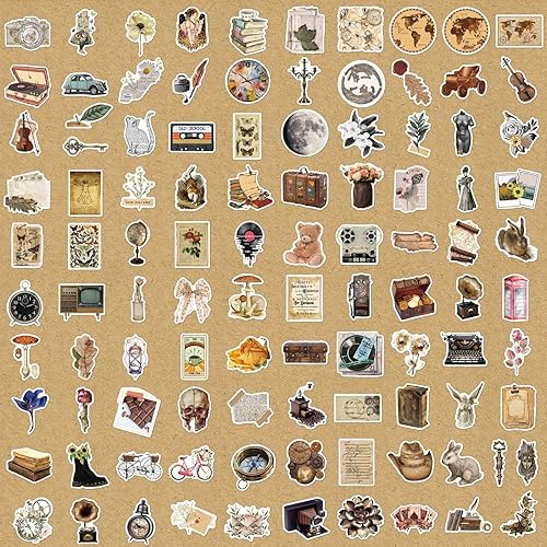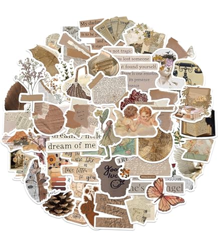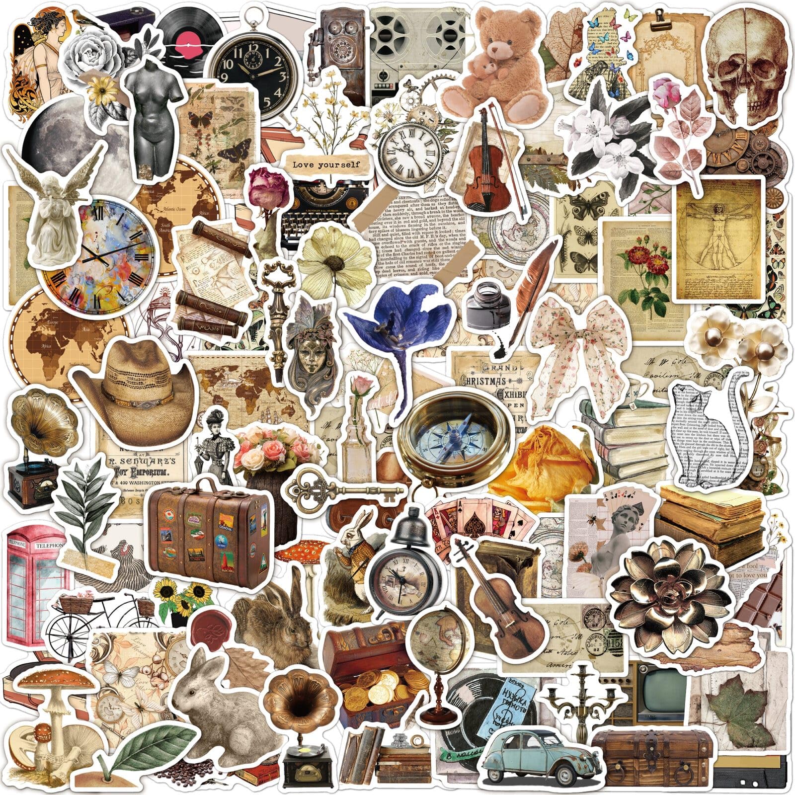 So viel Kreativität in einer Box! 50 einzigartige Vintage-Aufkleber ohne Duplikate. Aus wasserfestem PET-Material, leicht zu entfernen ohne Rückstände. Größen von 3,5-5,5cm - perfekt für Laptops, Journale, Skateboards, Koffer und mehr. Einfach abziehen und aufkleben - dekorieren was das Zeug hält! Tolle Geschenkidee für Jugendliche und Erwachsene. Lass deiner Kreativität freien Lauf und mach deine Sachen einzigartig!